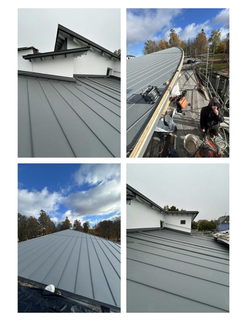 Die Turmdachflächen, sowie die unteren Walmdflächen sind bereits fertig eingedeckt.